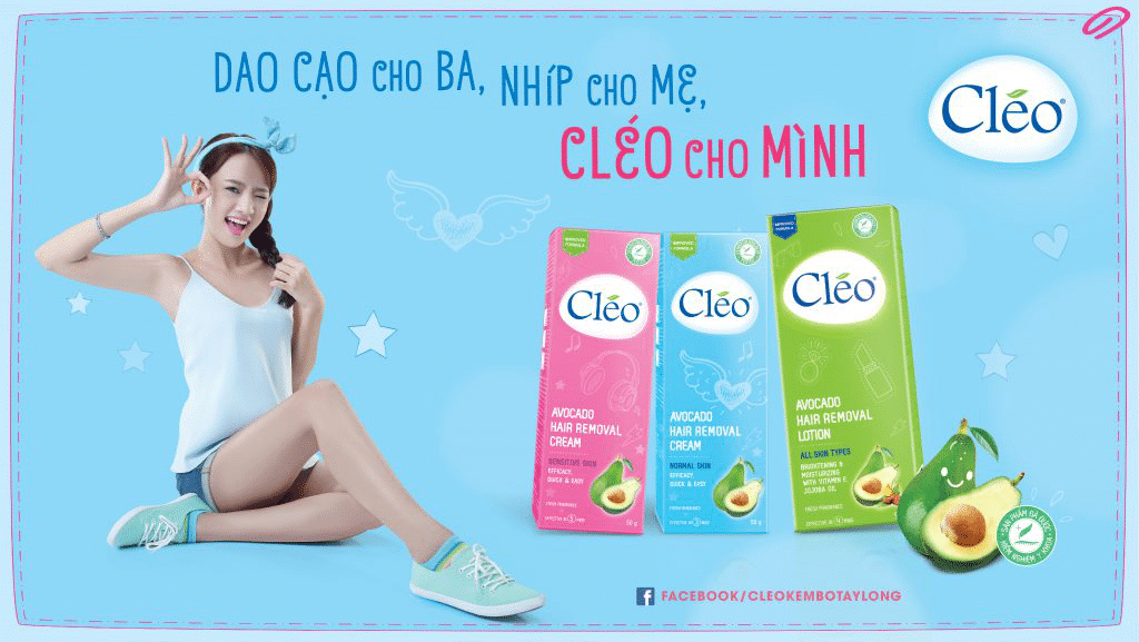 Kem tẩy lông Cleo với chiết xuất từ trái bơ tươi có công dụng giúp loại bỏ được cả những sợi vi-ô-lông cực kỳ nhanh chóng và hiệu quả chỉ trong vòng 4 phút mà không cần phải dùng dao cao hay dùng nhíp để nhổ. Tẩy lông nhanh, không đau rát là ưu thế của kem tẩy lông Cleo.